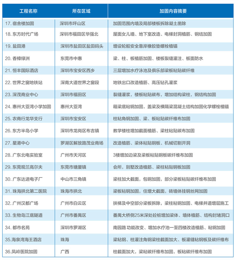 恒業(yè)加固公司主要工程實(shí)例業(yè)績表(以上施工時間先后排列)